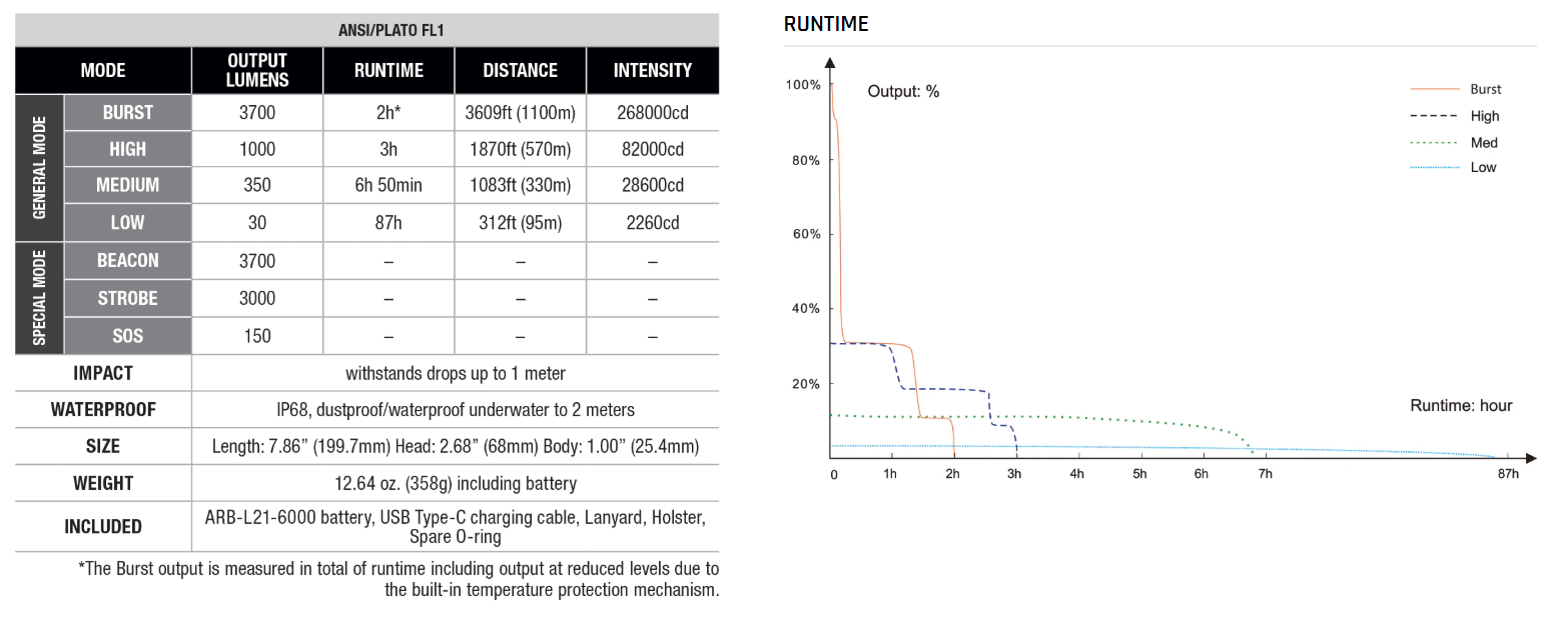Με τροφοδοσία από μια επαναφορτιζόμενη μπαταρία υψηλής χωρητικότητας 6000mAh, αυτός ο φακός παρέχει σταθερούς χρόνους λειτουργίας έως και 87 ώρες και φορτίζει μέσω μιας θύρας γρήγορης φόρτισης USB-C, η οποία είναι ενισχυμένη με εσωτερική στεγανοποίηση IP68 και προστατεύεται από ένα συρόμενο κάλυμμα σκόνης. Κατασκευασμένος από ανθεκτικό αλουμίνιο αεροπορικού τύπου, ο φακός μεγάλης απόστασης HT18R V2.0 έχει σχεδιαστεί για επαγγελματίες που εργάζονται σε δύσκολα περιβάλλοντα και απαιτούν μέγιστη ορατότητα σε πολύ μεγάλες αποστάσεις – πάνω από ένα χιλιόμετρο. Ο φακός Fenix ​​HT18R V2.0 συνοδεύετε από θήκη.