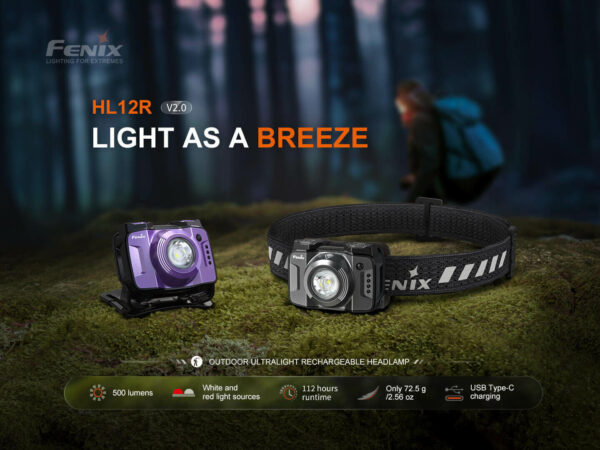 Ο φακός κεφαλής Fenix Fenix HL12R V2.0 είναι κατασκευασμένος για όσους αρνούνται να επιβραδύνουν. Διαθέτει μέγιστη φωτεινότητα 500 lumens και απόσταση δέσμης 125 μέτρων, είναι ιδανικός για τζόκινγκ ή και ολονύχτιες εκδρομές. Επιλέξτε μεταξύ των λειτουργιών λευκού, θερμού λευκού και κόκκινου φωτός με τα εύχρηστα επάνω διπλά κουμπιά, επιτρέποντας γρήγορες και ακριβείς αλλαγές λειτουργίας. Σε μόλις 72.5 Γραμμάρια, είναι ένας εξαιρετικά ελαφρύς προβολέας—ιδανικός για τρέξιμο. Ο HL12R V2.0 διαθέτει λειτουργεία κλειδώματος για την αποφυγή τυχαίας ενεργοποίησης και σύστημα κεφαλόδεσμου διπλής κατεύθυνσης που ρυθμίζεται εύκολα για ασφαλή και άνετη εφαρμογή. Επαναφορτίστε με USB-C (εμπεριέχεται) όταν χρειάζεται. Όποια πρόκληση κι αν είναι μπροστά σας, ο προβολέας Fenix HL12R V2.0 είναι κατασκευασμένος για να σας κρατά δυνατούς.