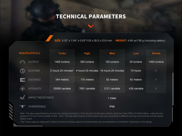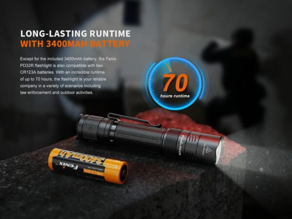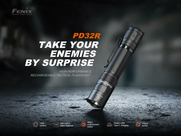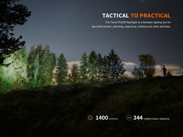 Ο Φακός Fenix PD32R είναι ένας φακός υψηλής ποιότητας που έχει σχεδιαστεί για όσους απαιτούν απαράμιλλη αξιοπιστία και απόδοση. Με μέγιστη φωτεινότητα 1400 lumens και εντυπωσιακή δέσμη 344 μέτρων, διασφαλίζει ότι κάθε μονοπάτι που ακολουθείτε είναι έντονα φωτισμένο και καθαρό. Ο Φακός Fenix PD32R προσφέρει την άνεση της γρήγορης φόρτισης USB Type-C. Με εκπληκτικό χρόνο λειτουργίας 70 ώρες, αυτός ο φακός είναι ένας ανεκτίμητος σύντροφος για εκτεταμένες υπαίθριες περιπέτειες, διασφαλίζοντας ότι δεν θα μείνετε ποτέ στο σκοτάδι. Κανένα περιβάλλον δεν είναι πολύ σκληρό για το Fenix PD32R , καθώς διαθέτει αξιοσημείωτη αδιάβροχη βαθμολογία (IP68), εξασφαλίζοντας βέλτιστη λειτουργικότητα ακόμη και στις πιο υγρές συνθήκες. Επιλέξτε το Fenix PD32R και μπείτε σε έναν κόσμο ασυναγώνιστου φωτισμού και διαρκούς ποιότητας. Ο Φακός Fenix PD32R έχει μνήμη, δηλαδή ανάβει στο επίπεδο φωτεινότητας που επιλέξατε κατά την τελευταία χρήση του.