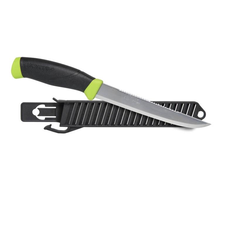 Ένα μαχαίρι της Morakniv ιδανικό για ψαράδες, με οδοντωτή την πίσω πλευρά για να απομακρύνετε τα λέπια. Η λάμα είναι από ανοξείδωτο ατσάλι. Λαβή υψηλής τριβής και θήκη “Easy-Clean” με δύο εναλλάξιμα κλιπ ζώνης.