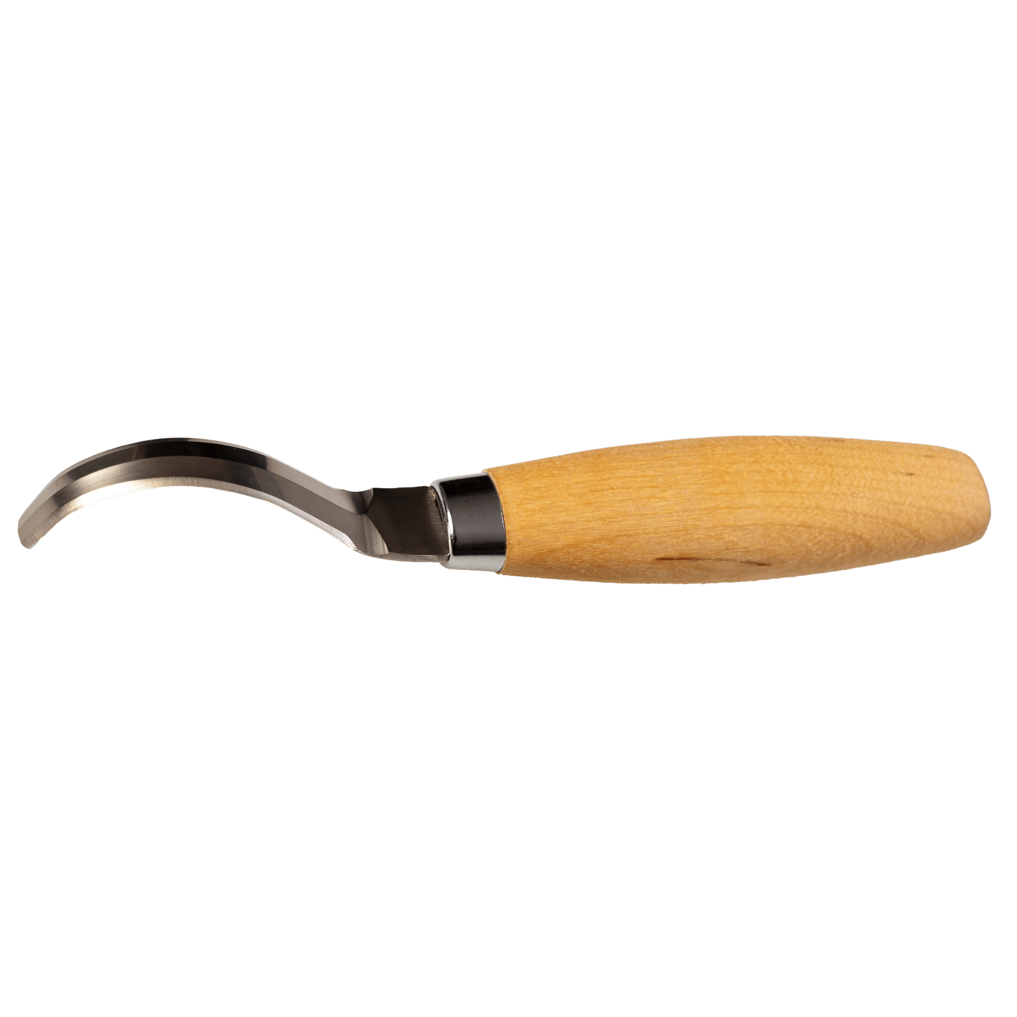 Χαρακτηριστική διαφοροποίηση του Morakniv Hook Knife 163 Αμφίκοπο από τα υπόλοιπα μαχαίρια ξυλογλυπτικής της Morakniv είναι κυρτή και δίκοπη λάμα του.