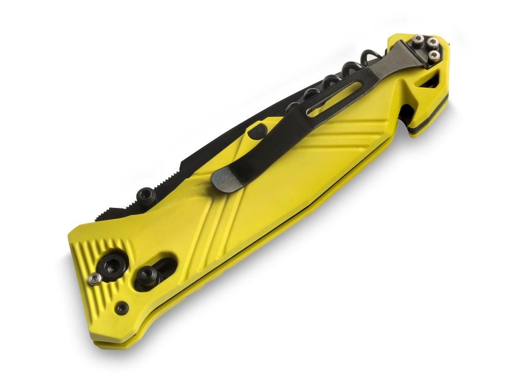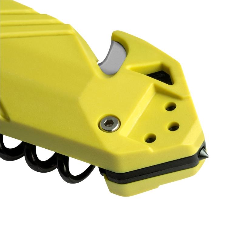 Στο κάτω μέρος της λαβής είναι εφοδιασμένο με ακίδα θραύσης κρυστάλλων ενώ στο μπροστινό μέρος της λαβής υπάρχει κόφτης ασφαλείας ζώνης αυτοκινήτου. Πρόκειται σίγουρα για έναν από τους καλύτερους σουγιάδες της αγοράς, ειδικά αν αναλογιστεί κανείς όλα τα ποιοτικά χαρακτηριστικά και την πολύ προσιτή τιμή του.