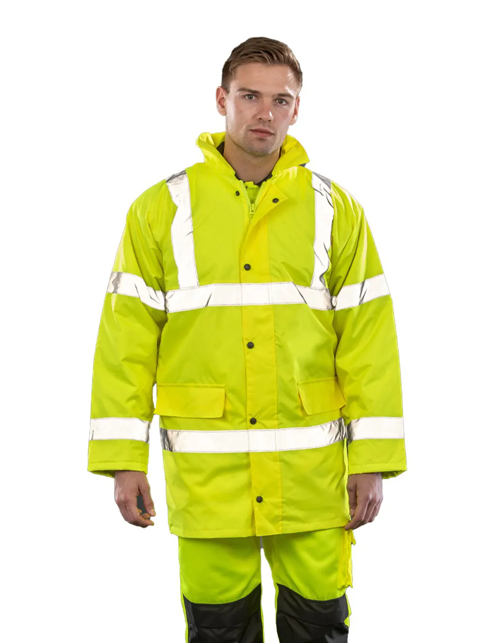 Σύνθεση : Oxford 300D – 100% Πολυέστερ – 190Τ καπιτονέ φόδρα – Ανθεκτικό στο νερό (1000mm) και αντιανεμική μεμβράνη PU – Εσωτερική επένδυση 160g/m² – 100% Πολυέστερ καπιτονέ, EN ISO 20471:2013+A1:2016 Class 3, IS-3279-TOM Issue 2:2019 Class 3 (μόνο στο orange)