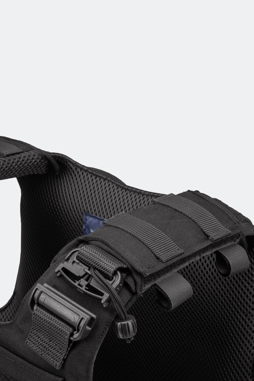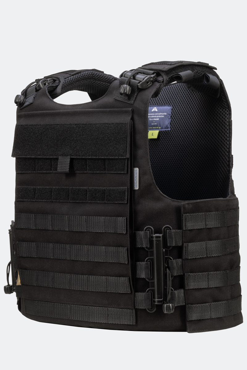 Ο φορέας Tactical QR I έχει σύστημα προσαρμογής τεσσάρων σημείων, στους ώμους και τη μέση, με ταινίες hook/loop και αντικαταστάσιμους συνδέσμους ταχείας απελευθέρωσης τύπου “TUBE”. το οποίο επιτρέπει τη γρήγορη και εύκολη τοποθέτηση και αφαίρεσή του . Τα φαρδιά κλεισίματα στους ώμους και στη μέση εξασφαλίζουν τη σταθερή, άνετη και ξεκούραστη εφαρμογή στο σώμα. Παρέχει περιμετρική κάλυψη 360°, σε στήθος/πλάτη/πλευρά, και οι αυτόδετες ταινίες του καλύπτουν το πρότυπο MIL SPEC F AA-55126B.