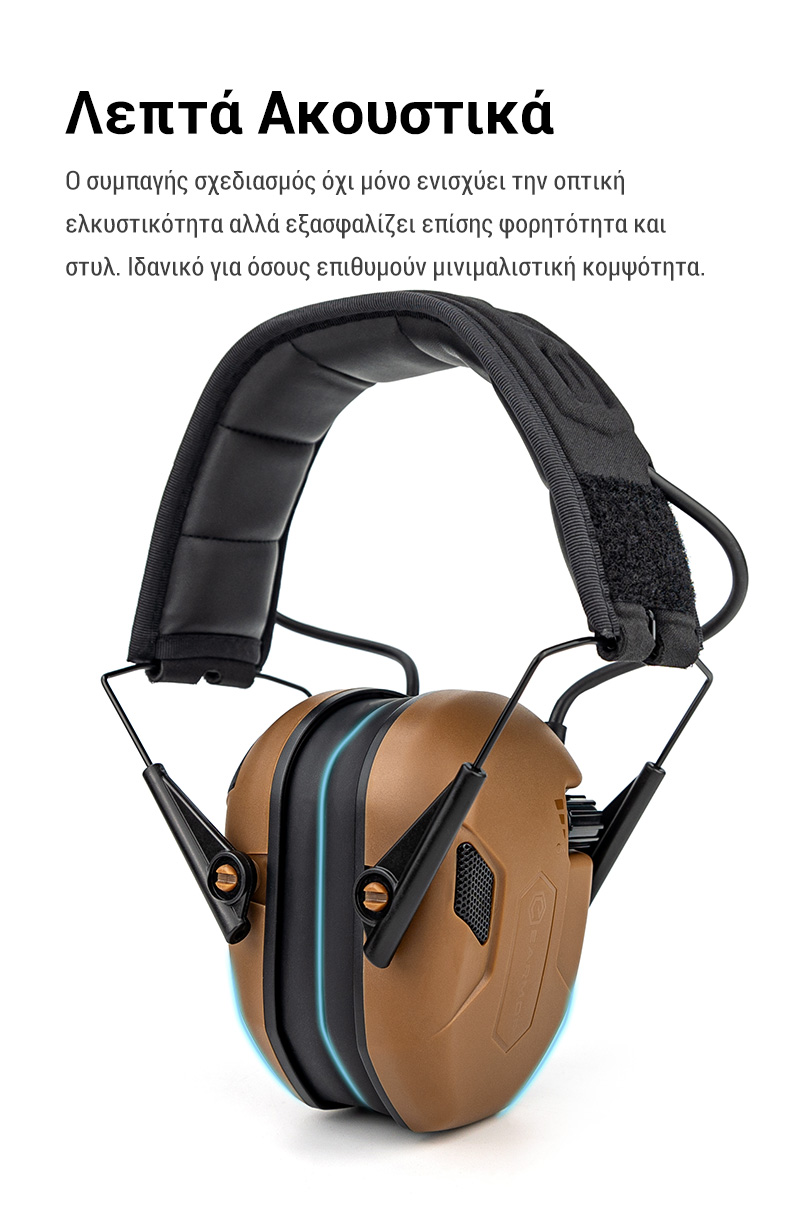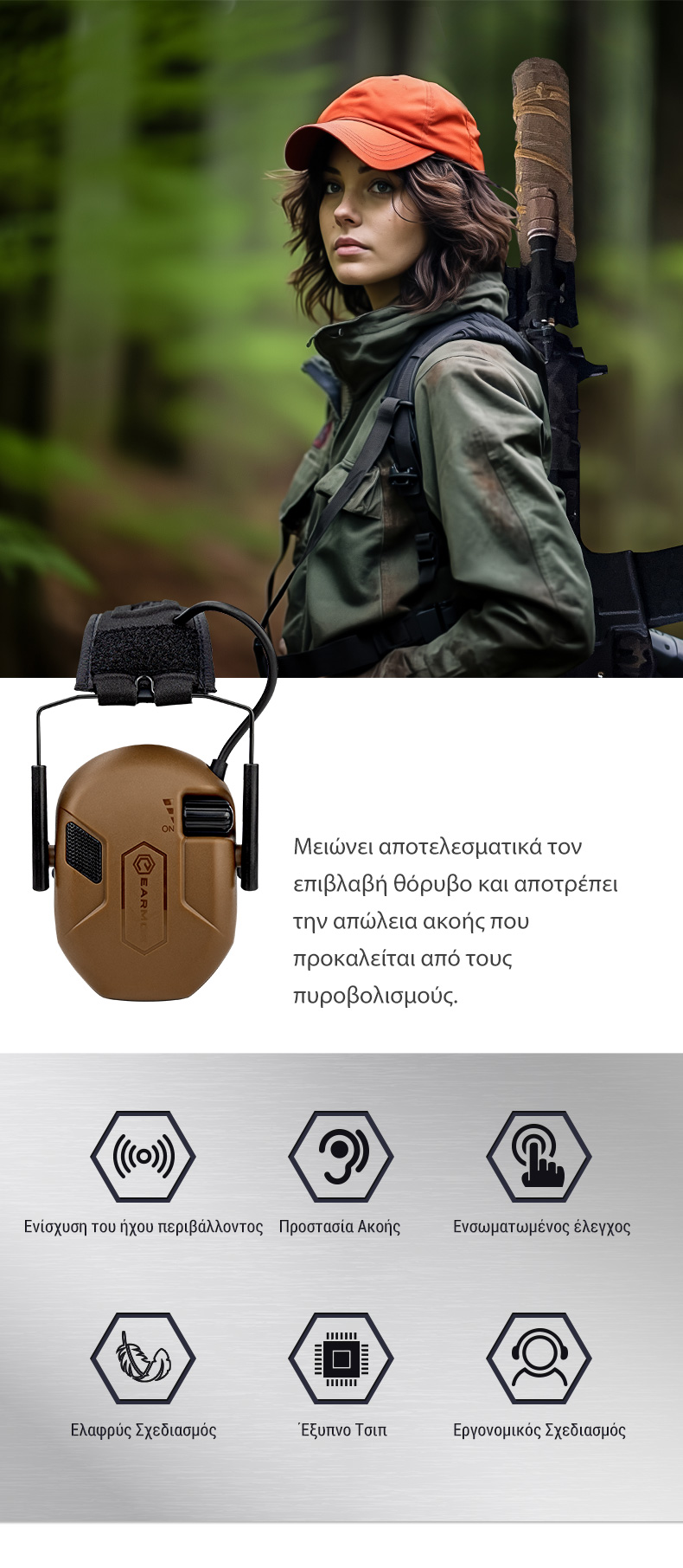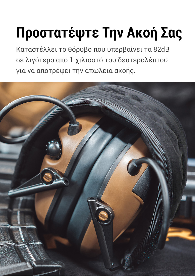 Εξοπλισμένες με ένα ενσωματωμένο τσιπ που χρησιμοποιεί προηγμένη τεχνολογία επεξεργασίας ψηφιακού σήματος, μειώνουν αποτελεσματικά τον ένταση του ήχου σε θορυβώδη περιβάλλοντα και ελαχιστοποιούν τη ζημιά που προκαλείται στην ακοή από τον ήχο των πυροβολισμών .