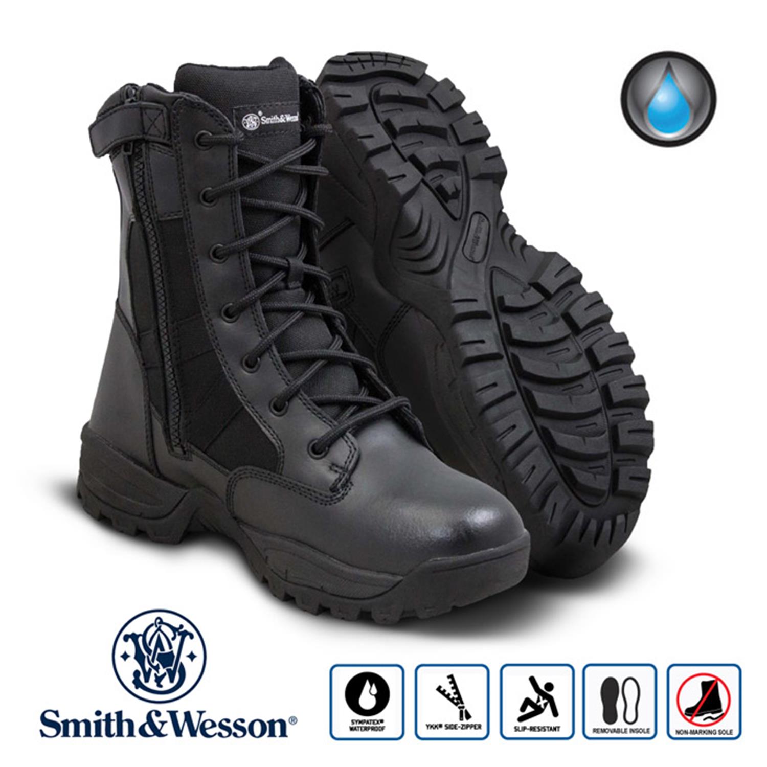 Άρβυλο ύφασμα δέρμα αδιάβροχο με φερμουάρ στο πλάι. Κατασκευασμένο με τα υψηλά standards που θέτει η Smith & Wesson ώστε να είναι άνετο και ξεκούραστο συγχρόνως όμως να προστατεύει και να κρατάει στεγνό το πόδι.