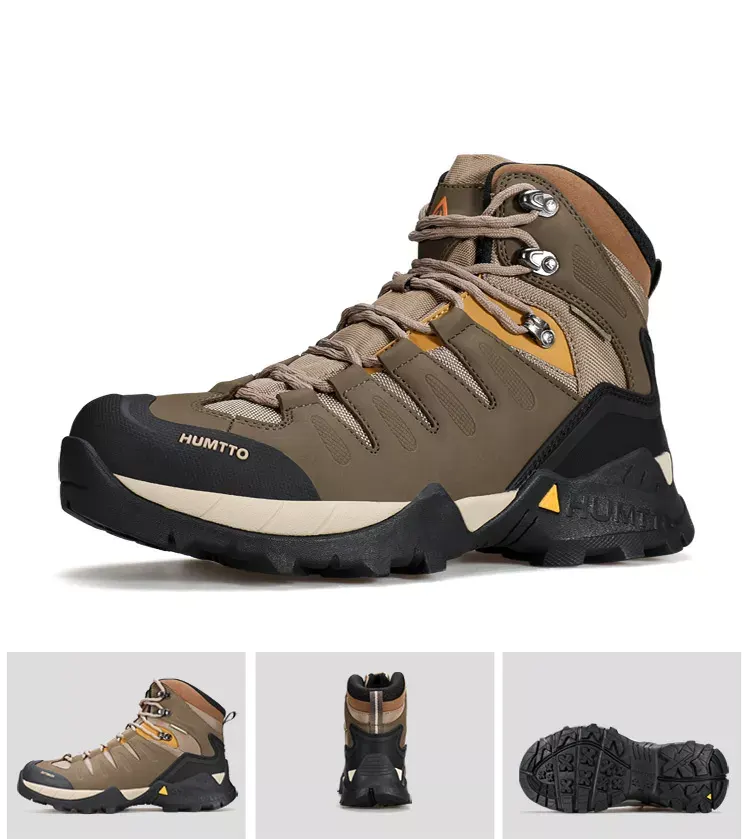Δέρμα αγελάδας + ύφασμα, EVA + καουτσούκ, επιλεγμένο δερμάτινο ύφασμα, άνετο, ανθεκτικό στη φθορά και ανάγλυφο, εξωτερική σόλα από καουτσούκ για απορρόφηση κραδασμών και άνεση